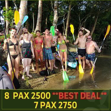 ALL IN PACKAGES: INCLUDES ALL TRANSPORTATION ,FEES, GUIDES, EQUIPMENT , FOOD & BEVERAGES, SUP & KAYAK TOURS AND AQUABLASTER CAPTURE THE FLAG & SHOOTING RANGE 8:30 AM TO SUNSET