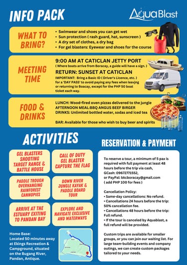 NO Min Group size Custom Small/Large groups/team building available. Aquablast staff will come and give a briefing and pick up payment to reserve your place on the tour.
